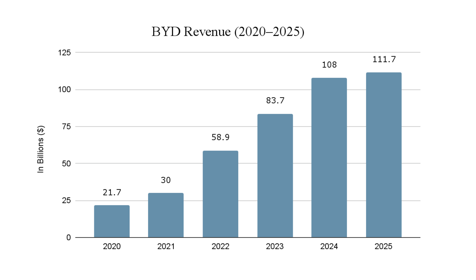 If we look at the story of the giant in more recent days, BYD reported over 30 industrial parks, covering a staggering 18 million square meters across almost every continent on the planet. The massive R&D hubs for the company in Pingshan and Shenshan allow for the integration of manufacturing and housing at the same time. In 2025, BYD generated a revenue of ¥803.96, which equates to $117.8 billion. In comparison, Elon Musk’s Tesla generated $94.83 in revenue for the same time period. What is more important than the colossal revenue numbers is the slowing growth of the Chinese EV giant. Reports from Reuters show that BYD experienced its weakest pace for growth at 3.46% in six years.
